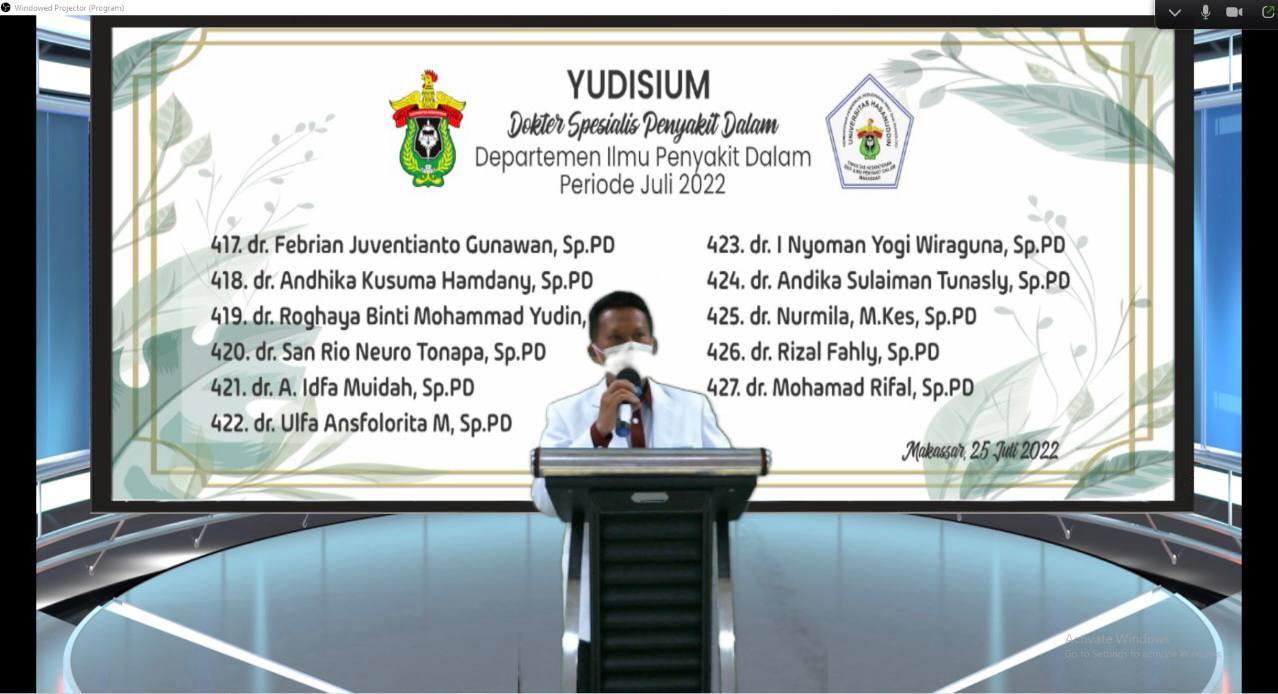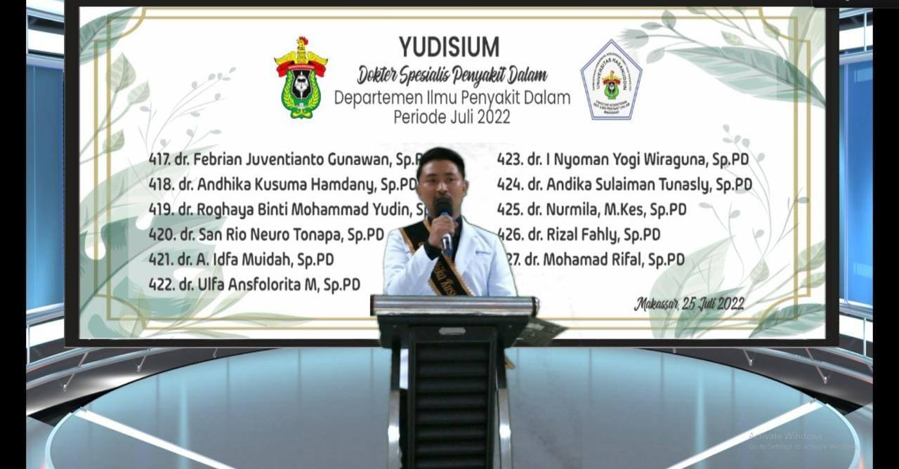 Umum Yudisium Dokter Spesialis Penyakit Dalam Departemen Ilmu Penyakit Dalam FK Univesrsitas Hasanuddin Periode Juli 2022 Interna Unhas July 26, 2022 Selamat dan Sukses kepada senior kami yang telah menyelesaikan Studi Spesialis Ilmu Penyakit Dalam, semoga semakin sukses dokter dengan gelar barunya. 🗓 Senin, 25 Juli 2022 📍 Departemen Ilmu Penyakit Dalam lt. 5 RS Pendidikan Unhas Post navigation Previous Previous post: Welcoming Party MPPDS Sp1 and Sp2 for the Period of July 2022Next Next post: Yudisium of Internal Medicine Specialist, Department of Internal Medicine, Hasanuddin University, July 2022 Related News Acara Umum PENERIMAAN MPPDS BARU SP-1 DAN SP-2 DEPARTEMEN ILMU PENYAKIT DALAM PERIODE JANUARI 2023 January 10, 2023 0 Umum Penerimaan Calon MPPDS Studi Ilmu Penyakit Dalam 2022/2023 December 9, 2022 0