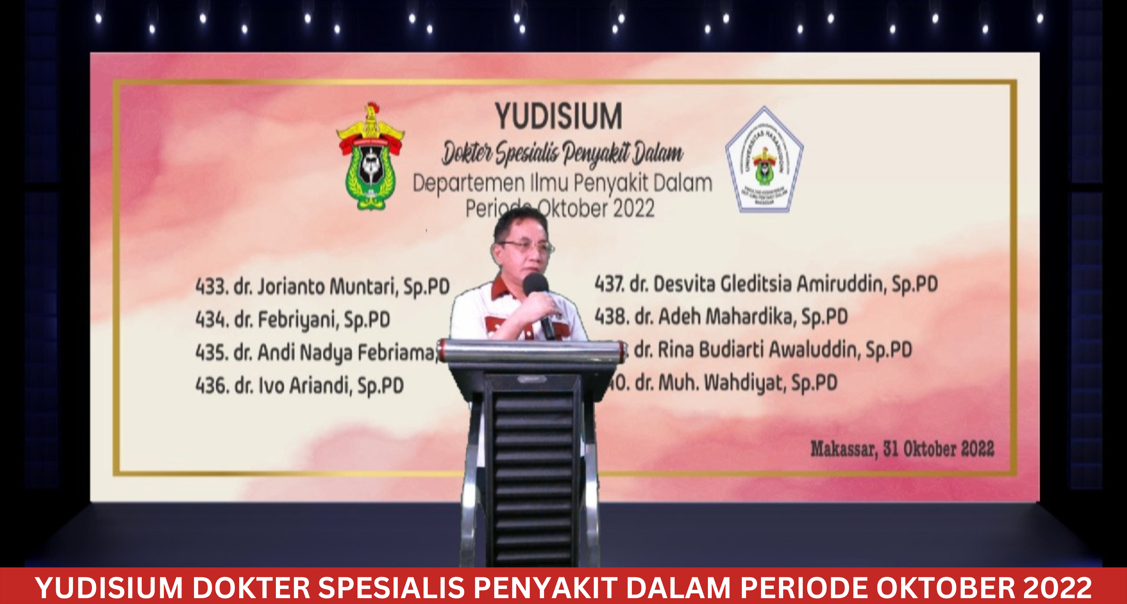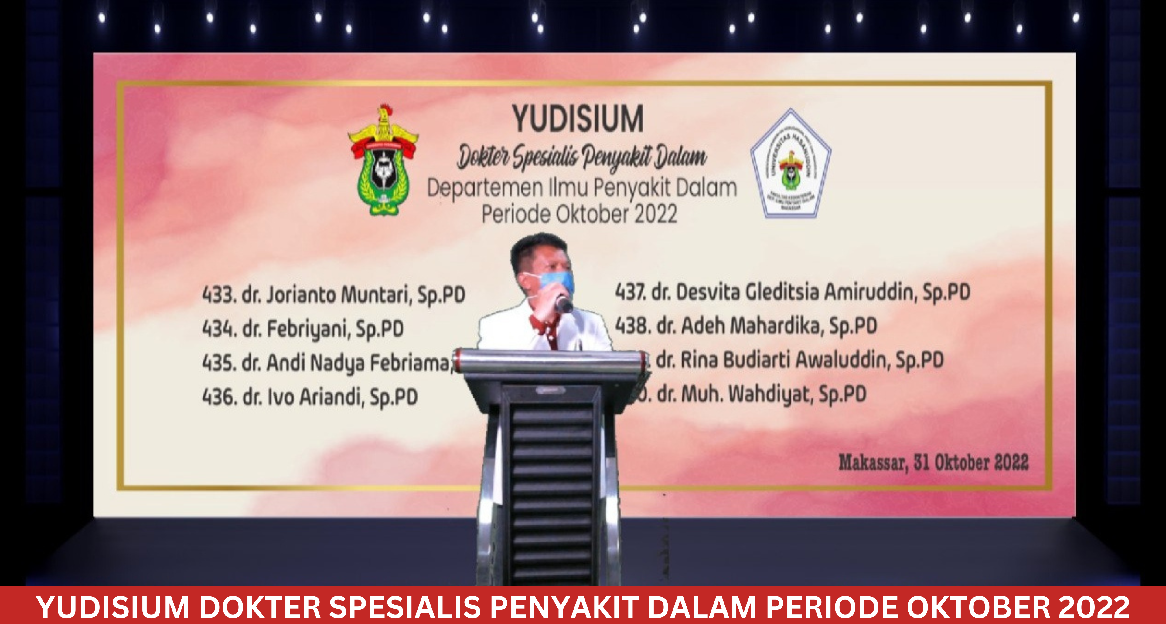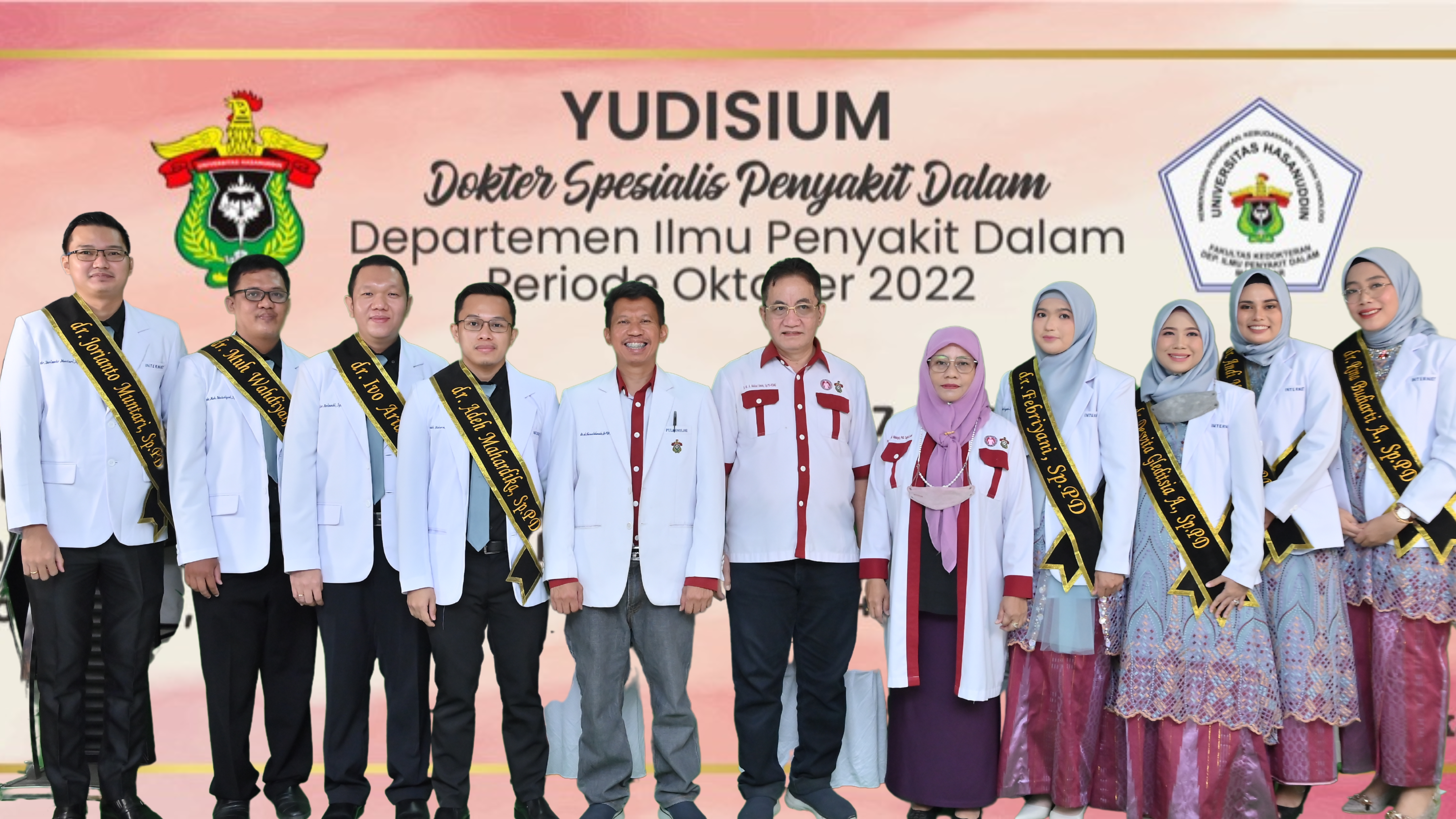 Monday, October 31st, 2022, the Yudisium of Internal Medicine Specialist Doctors, Faculty of Medicine, Hasanuddin University for the September 2022 period was held. During this period, 5 of our doctors successfully completed their education at this beloved almamater. The event was attended by supervisors, colleagues, and families of the graduates.