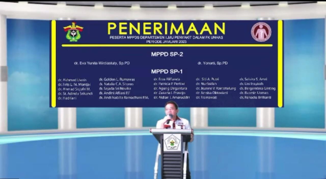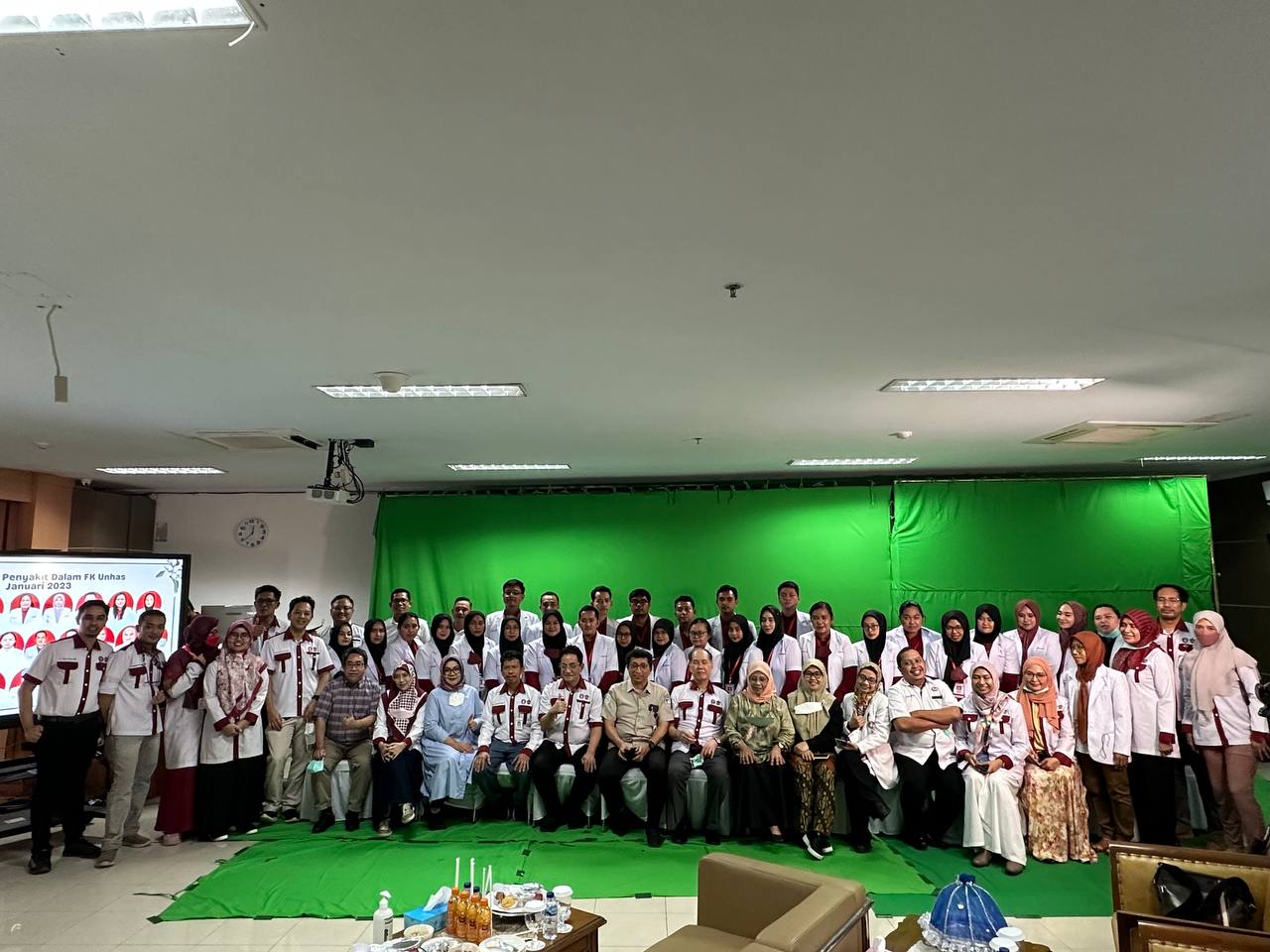 On Monday, January 9 2023, the Department of Internal Medicine, Faculty of Medicine, Hasanuddin University held a welcoming party for accepting 25 students from the Internal Medicine Specialist Education Program and 2 students from the Internal Medicine Subspecialist Education Program. This event, which is routinely held for every admission period, took place hybrid (offline and online) and is attended by supervisors and colleagues.